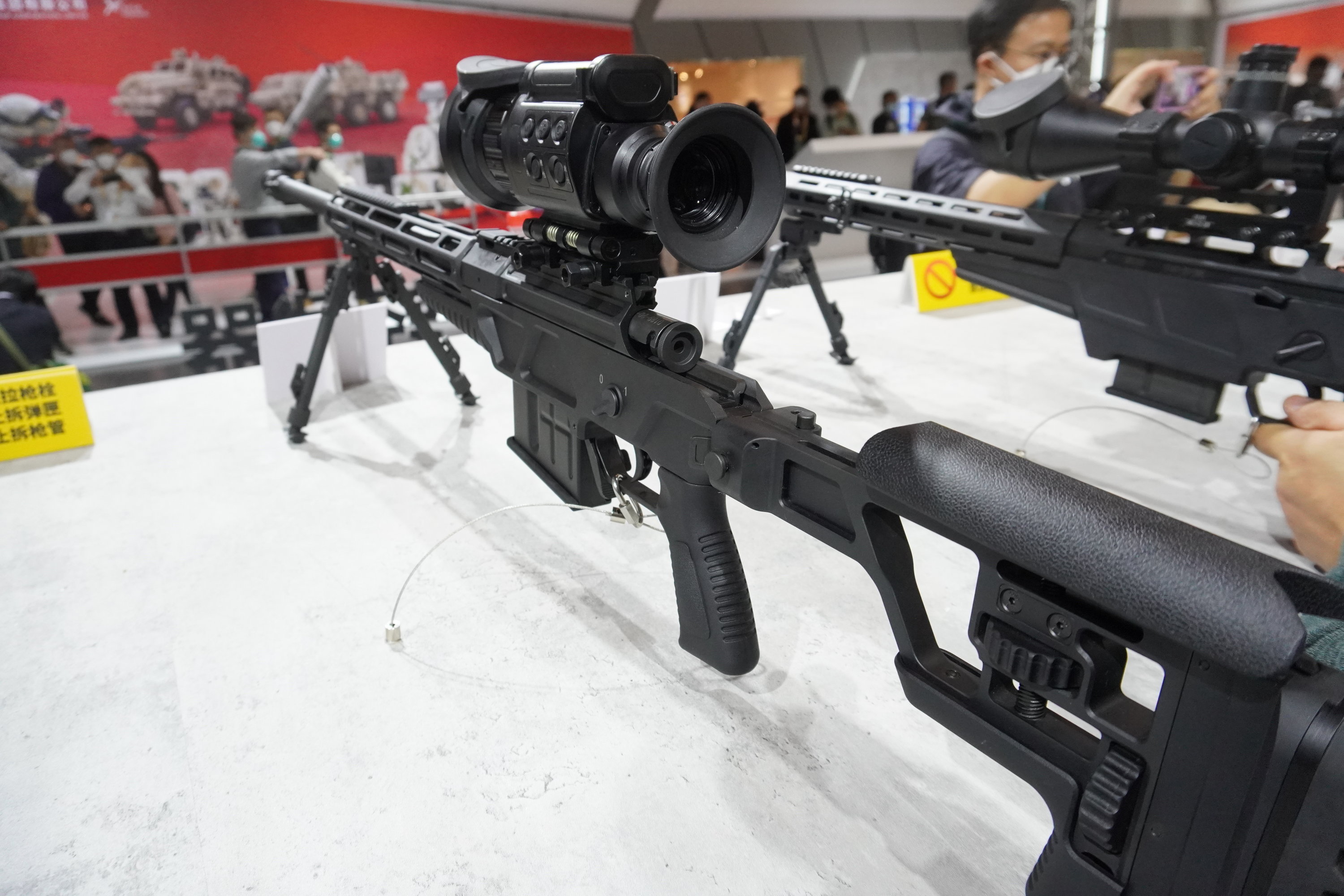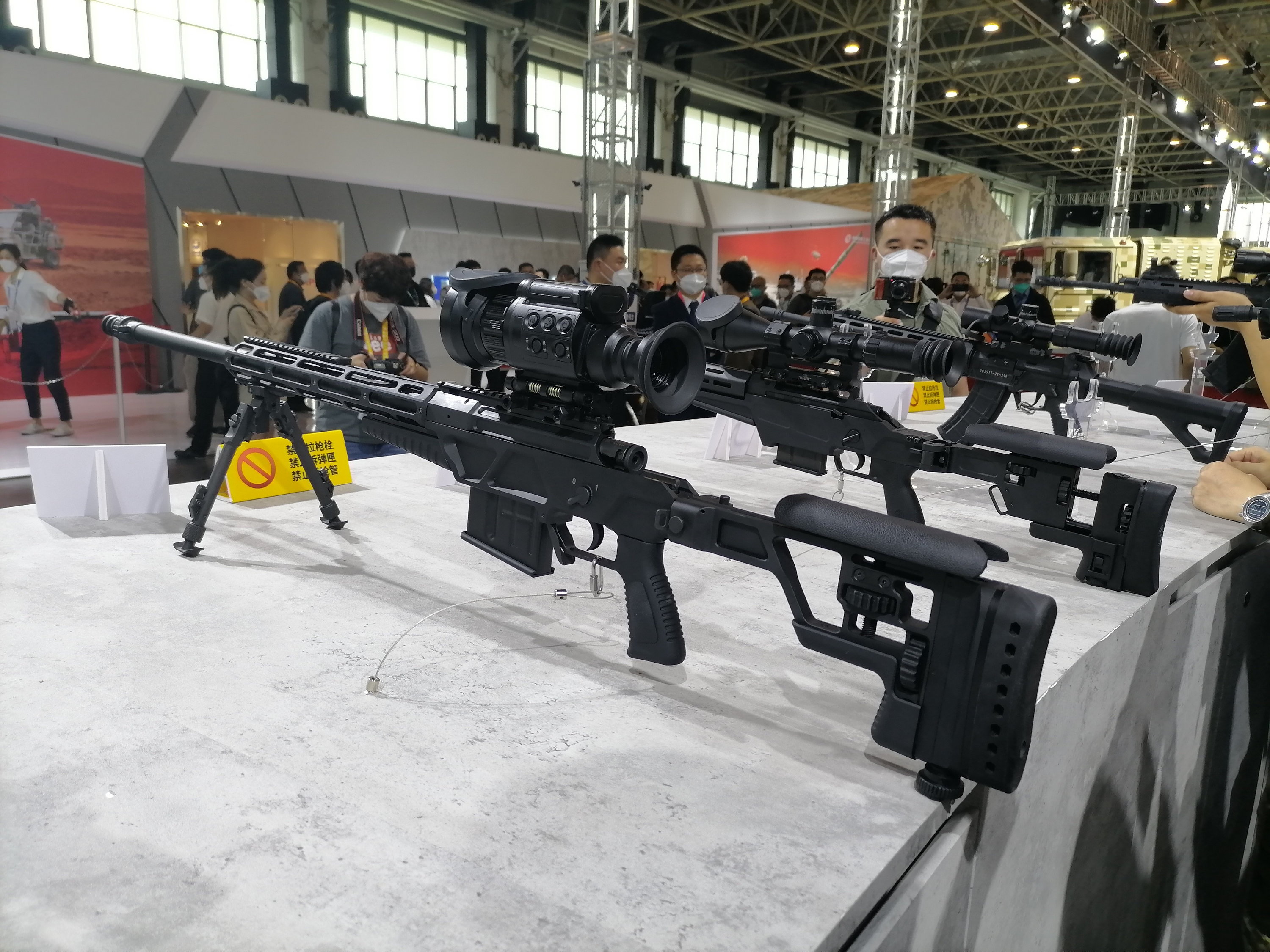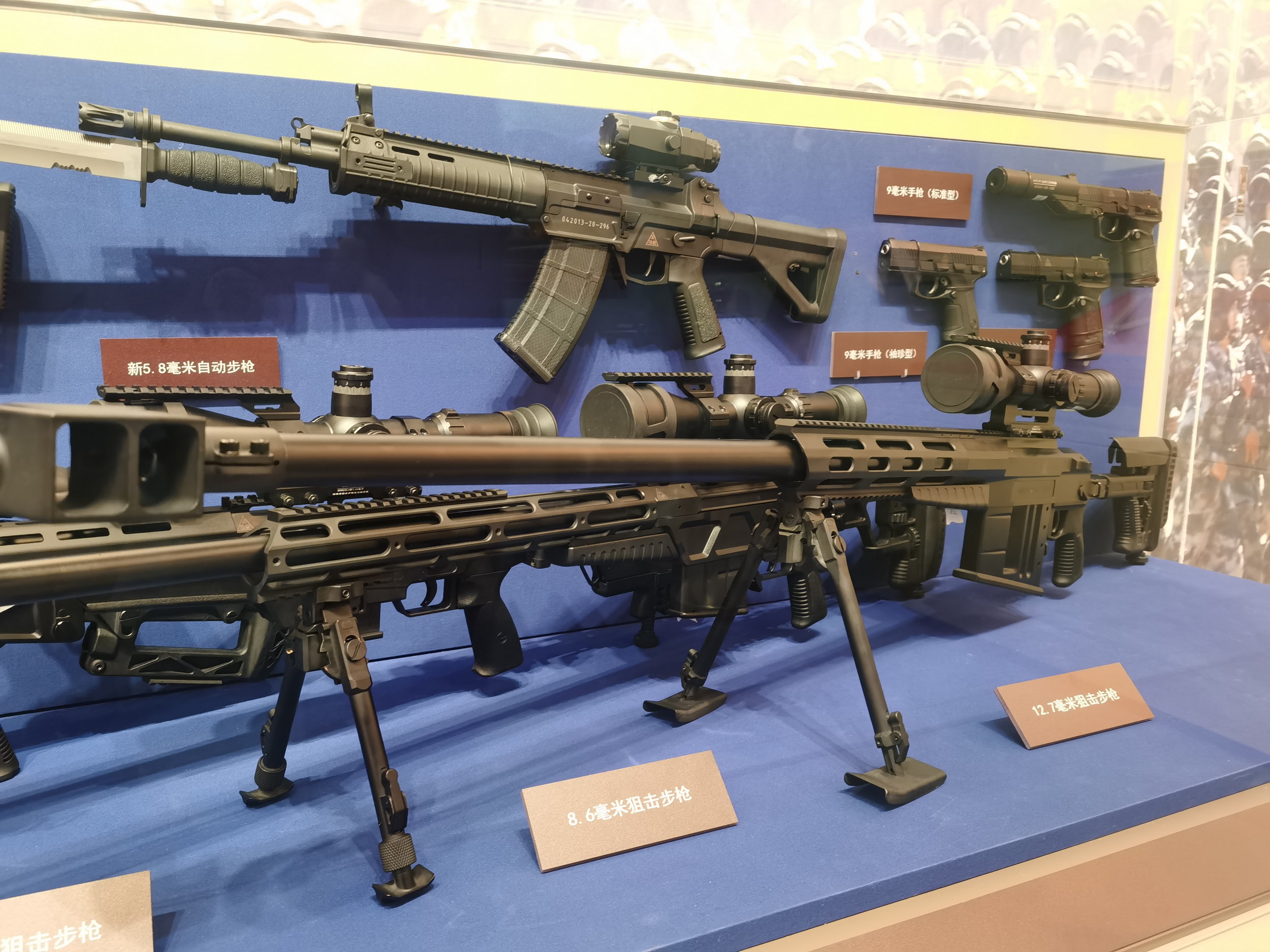 2022年党史馆展出的“部分国产新型单兵装备”展柜里的QBU201、202和203