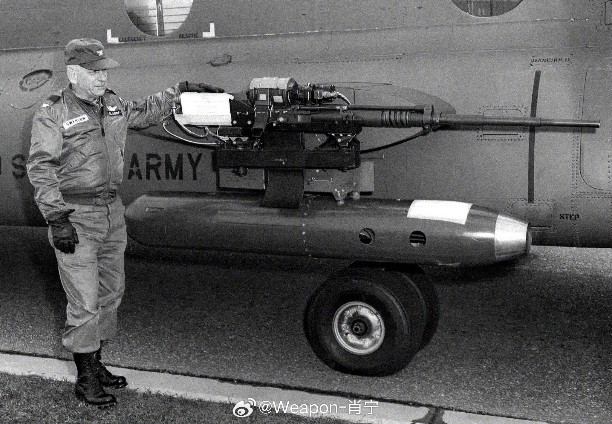 通过三联装炸弹挂架挂在F4机翼下的SUU-11机枪吊舱,虽然是为直升机研制的吊舱